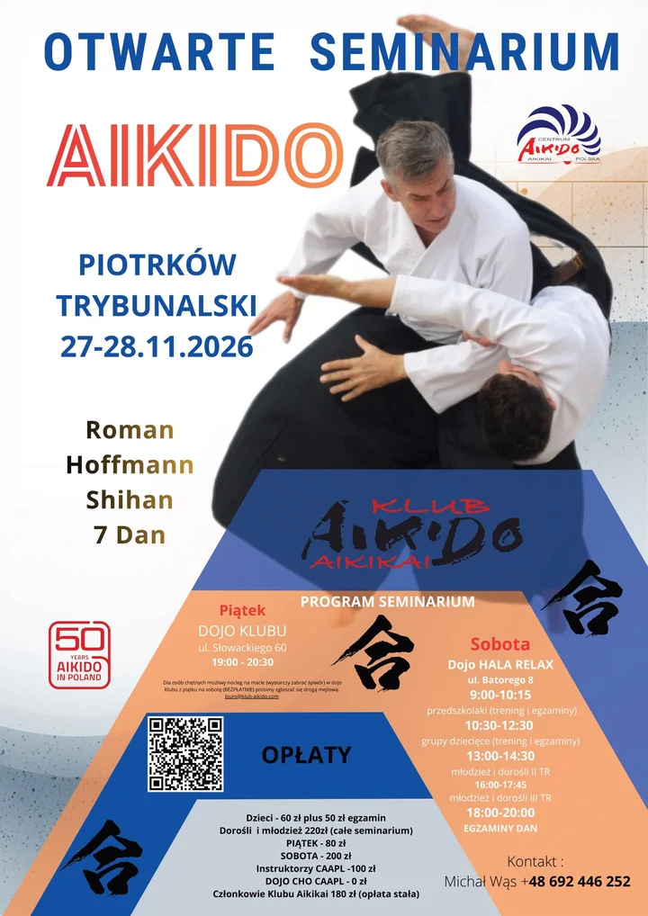 Jesienne seminarium aikido z shihanem Romanem Hoffmannem (7 dan) to propozycja na intensywny, praktyczny weekend treningów i egzaminów — dla najmłodszych i dla doświadczonych praktyków . Warto wpaść choć na jeden trening, żeby poczuć atmosferę i zobaczyć, jak wyglądają egzaminy mistrzowskie.